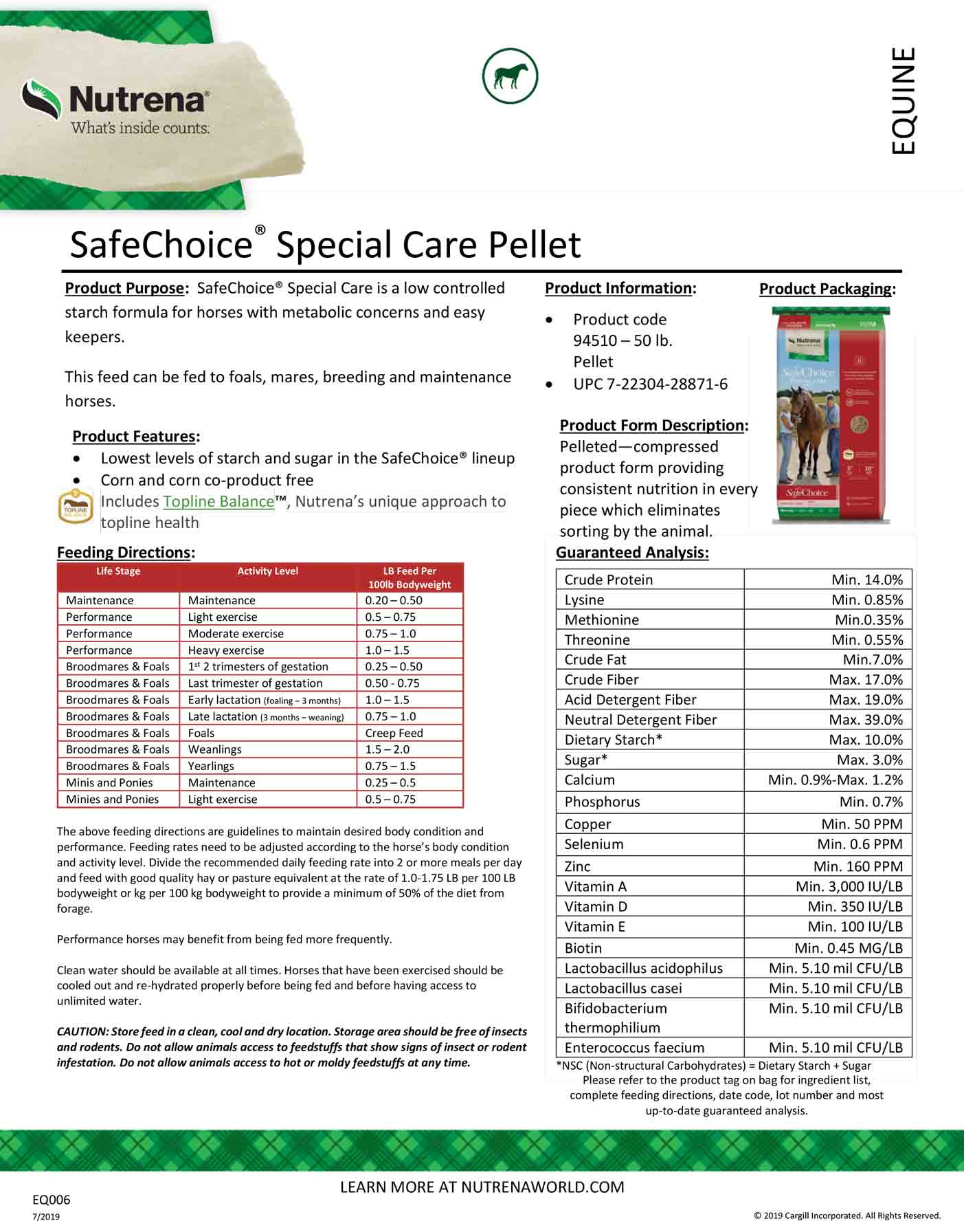 Nutrena Safechoice Special Care Horse Feed 50 Lb Bag Chewy Com